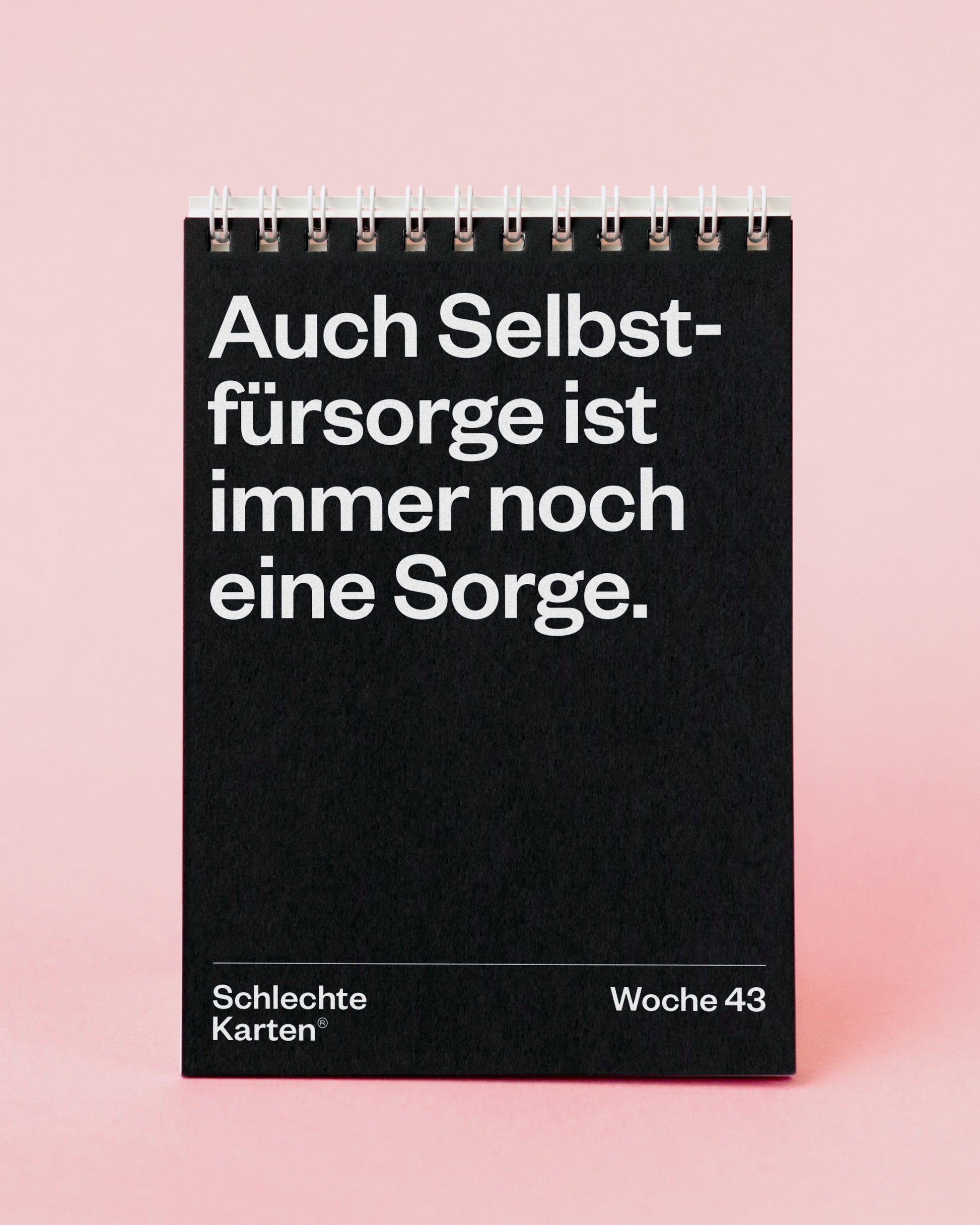 Sorry – bei all dem können wir dir auch nicht helfen. Dafür haben wir etwas viel Besseres: Schlechte Karten. Humorvolle Designprodukte gegen den Selbstoptimierungswahn. Von witzigen Postkarten über Tisch- und Wandkalender bis zum Duftkerzen-Downer. Mach dir selbst ein Geschenk – oder anderen eine Lektion in Demotivation.