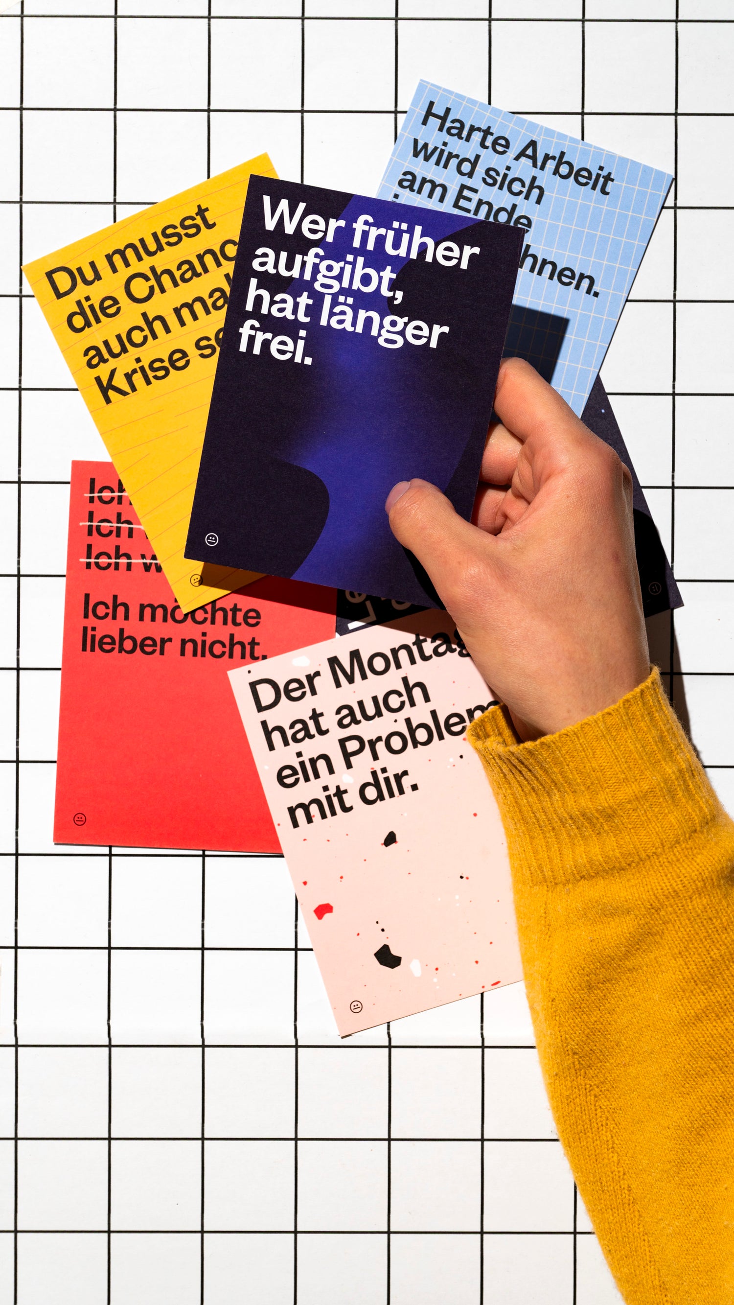 Unsere Postkarten sind für alle, die genug von falscher Motivation haben – und das auch zeigen wollen. Egal, ob du jemanden gratulieren, trösten oder einfach nur verwirren willst, sie passen zu jedem Anlass: